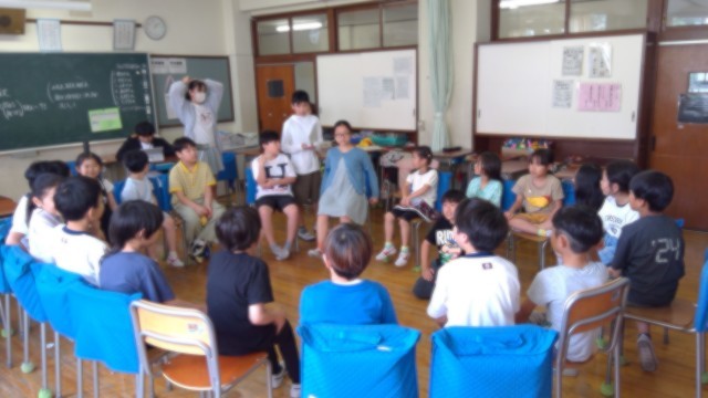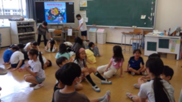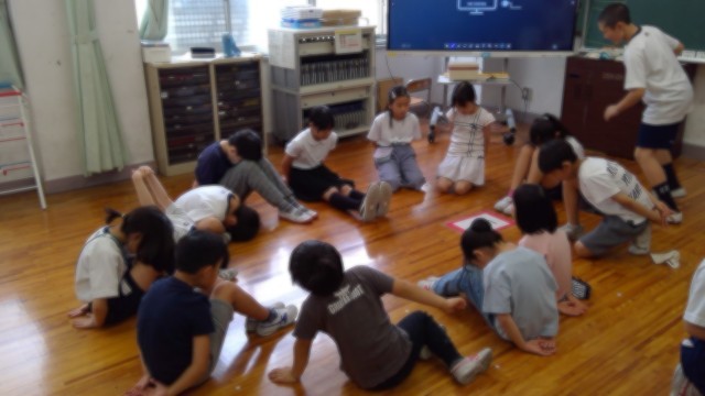 初回のこの日は、6年生の進行のもと、自己紹介をした後、ハンカチ落としや何でもバスケットなどをして楽しんでいました。