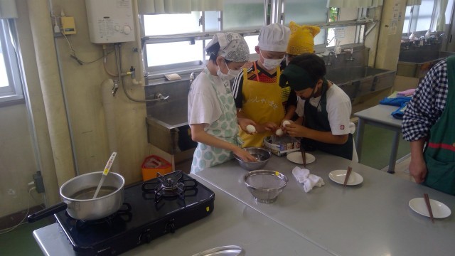 調理実習にだんだんと慣れ、コンロの使い方や湯の沸かし方が上手になってきています。