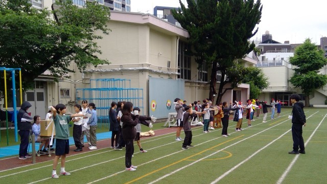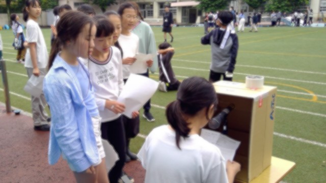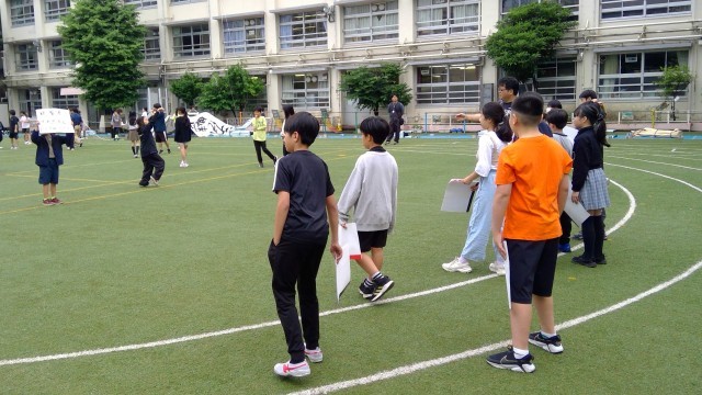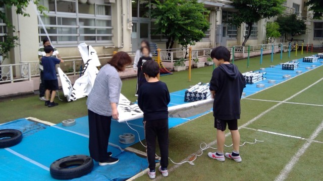 土曜日に予定していたスポーツフェスティバルは日曜日に延期になりましたが、5時間目には雨が上がったので、6年生と教職員とでできる準備や練習をしました。