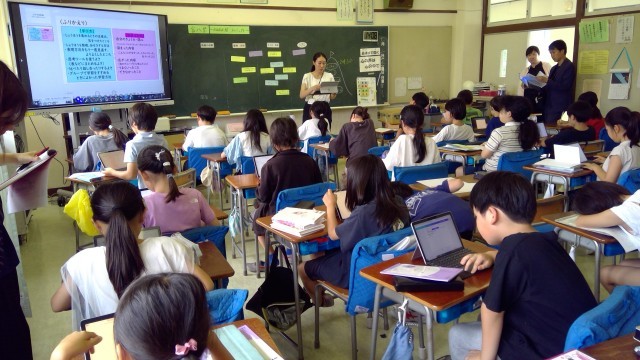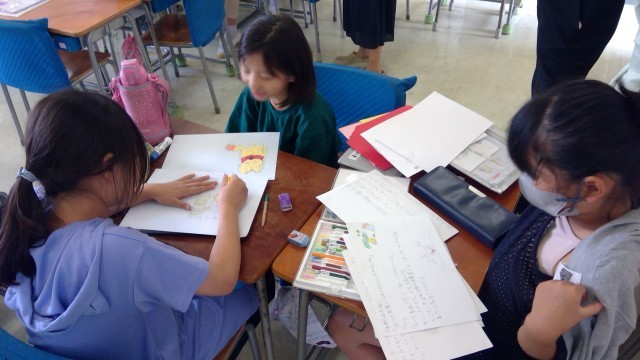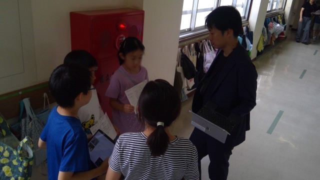 現在は、自分たちが受け継ぎ、これからも残していきたいことについて整理し、グループごとに、どのように広めていくかを話し合ったり伝える準備をしたりしています。校内研究の授業でもあったため、子供たちは、参観していた先生たちに積極的に助言をもらいにいっていました。