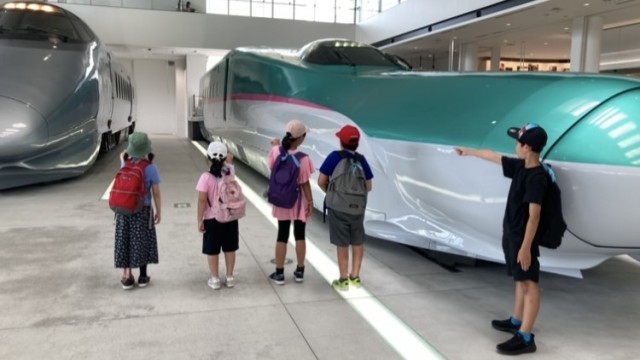鉄道博物館では、汽車や昔の車両の展示を見ました。新幹線ラウンジでは、本物の新幹線が目の前を通り、大興奮していました。