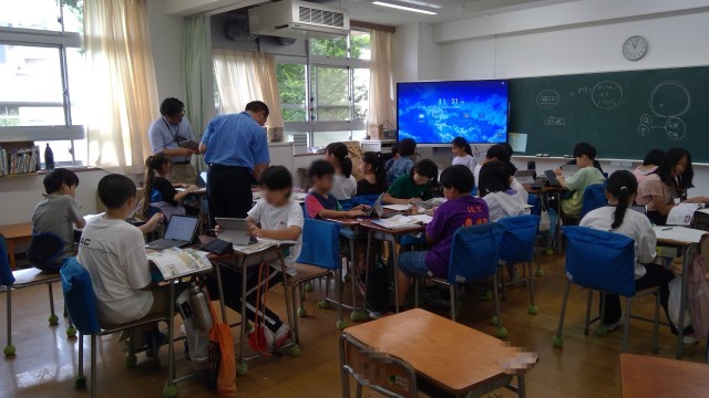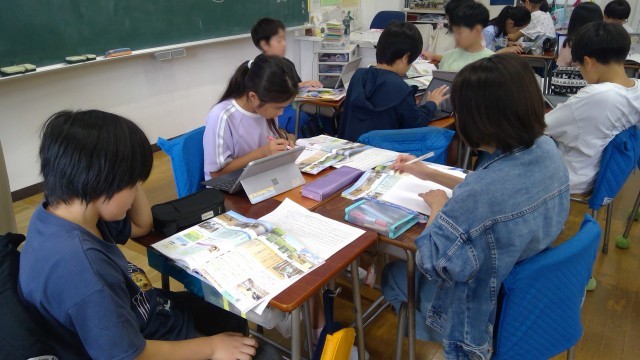 子供たちは、今日取り組む学習の計画を立てたり確認したりしてから、米作りの現状や変遷、課題や工夫などについて調べたり、友達と相談したりしていました。