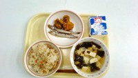 ・豚肉とごぼうのごはん・ししゃも焼き・南瓜の甘辛煮・すまし汁・牛乳