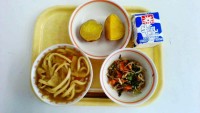 ・カレーうどん・ひじきのナムル・やきいも食べ比べ(シルクスイート・安納芋)・牛乳