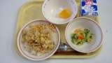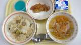 ・青菜とじゃこの炒飯 ・肉団子入り春雨スープ ・杏仁豆腐 ・牛乳