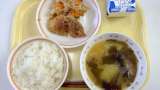 ・ごはん ・白身魚の七味揚げ ・竹輪と野菜の和え物 ・味噌汁 ・牛乳