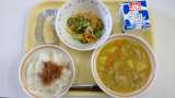 ・ごはん ・かつおでんぶ ・カレー肉じゃが ・じゃこ入りサラダ ・りんご ・牛乳