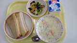 ・二色サンド ・クリームシチュー ・わかめサラダ ・牛乳 二色サンドは、食パ...