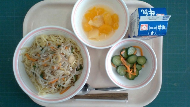 〈今日の給食〉1月13日(火) 公開日 2026/01/15 更新日 2026/01/15 給食だより しょうゆラーメン、きゅうりの中華漬け、フルーツパンチ、牛乳〈産地〉ぶたにく:茨城県しょうが:高知県ねぎ:千葉県にんじん:千葉県もやし:栃木県にら:栃木県きゅうり:宮崎県パイン:沖縄県