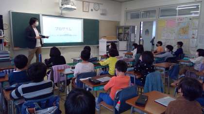 GMOプログラミング出前授業 公開日 2021/11/02 更新日 2021/11/02 学校の様子 10月22日(金)、1〜4時間目に、GMOによるプログラミング出前授業が行われました。「順次」・「分岐」・「繰り返し」の3通りを学び、「Scratch」を用いてプログラミングの基礎を学びました。