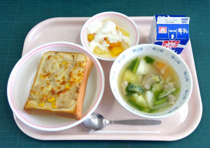 〈今日の給食〉10月28日(木) 公開日 2021/10/28 更新日 2021/10/28 給食だより ツナトースト、かぶのポトフ、フルーツヨーグルト、牛乳 〈産地〉 ぶたにく:群馬県 たまねぎ、にんじん、じゃがいも:北海道 キャベツ、パセリ:長野県 かぶ:青森県