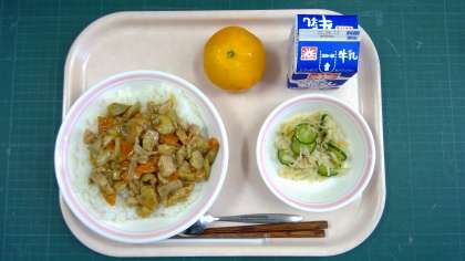 カミカミごまだれ丼、切干大根のごま和え、冷凍みかん、牛乳