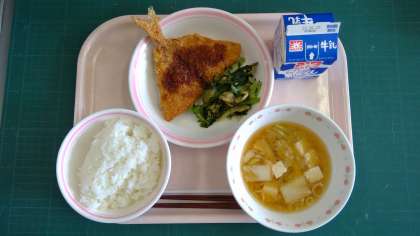 〈今日の給食〉6月22日(水) 公開日 2022/06/22 更新日 2022/06/22 給食だより ご飯、あじフライ、いそ和え、えのきと豆腐のみそ汁、牛乳 〈産地〉 キャベツ、きゅうり、群馬県 こまつな:東京都 えのき、はくさい:長野県 ながねぎ:千葉県
