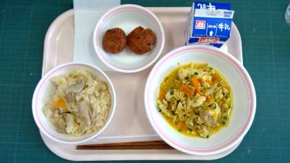 シシジューシー、豆腐チャンプルー、サーターアンダギー、牛乳