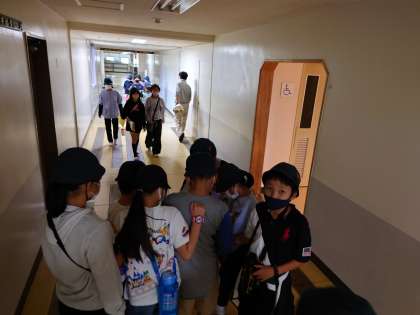 とても広い施設ですが、班ごとに協力して取り組む姿が見られました。