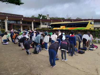 昼食を食べ、いよいよ那須甲子青少年自然の家との別れのときです。出発式のときよりも成長した態度が見られました。