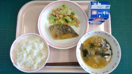 〈今日の給食〉6月29日(木) 公開日 2023/06/29 更新日 2023/06/29 給食だより ご飯、ほっけの竜田揚げ、揚げ豆サラダ、大根とわかめのみそ汁、牛乳 〈産地〉 ほっけ:ロシア しょうが:高知県 キャベツ、きゅうり:群馬県 にんじん:千葉県 だいこん:北海道 ねぎ:茨城県
