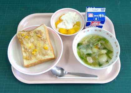 【今日の給食】6月25日(金) 公開日 2021/06/25 更新日 2021/06/25 給食だより ツナトースト、かぶのポトフ、フルーツヨーグルト、牛乳 〈産地〉 ぶたにく:茨城県 たまねぎ:兵庫県 にんじん、パセリ:千葉県 キャベツ:茨城県 かぶ:青森県 じゃがいも:長崎県