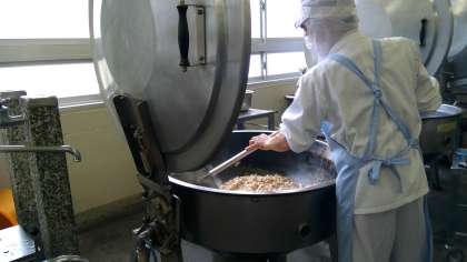 今日は、渋谷ワンダフル給食プロジェクトの第一回目の献立でした。このプロジェクトは、渋谷区と服部栄養専門学校が協力して行う、新たな取組です。「鶏もも肉のグレモラータ仕立て」は、にんにく・パセリ・レモンの皮を合わせたグレモラータを仕上げに入れています。子供たちからは、「レモンの味がする」「クリームシチューは苦手だけど、これは食べられた」という声がありました。今まで食べたことのない味を経験し、子供たちの食の幅を広げる良い機会になりました。