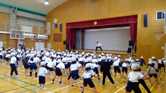 2月25日(火)の3,4校時に「笑顔と学びの体験活動プロジェクト」として、EXILE ÜSAさんを講師にお招きしてのダンス教室がありました。1,2,3年生の児童が、EXILEの代表曲「Choo Choo TRAIN」の振り付けを教えていただき、曲に合わせて踊りました。最後はみんなで記念写真を撮って、楽しくダンスを学ぶことができました。