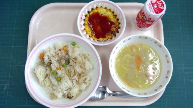ツナピラフ、スパニッシュオムレツ、ABCスープ、ジョア