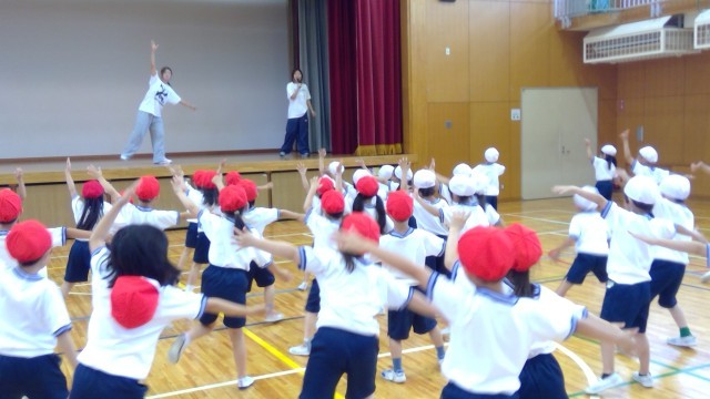 6月23日(月)3・4時間目にLDHに所属しているダンサーの方が来校し、「1・2年生のダンス教室」を行いました。ステップを踏んだり、両手を挙げてポーズをしたり、覚えやすい振り付けを何種類か教えてくれました。子供たちの飲み込みも早く、あっという間に全ての振り付けを覚えることができました。EXILEBHAPPYというダンスグループが歌っている「Beautiful Name」(ビューティフルネイム)でみんなで楽しく踊ることができました。このダンスをきっかけにさらに「表現遊び」に興味・関心を高めてほしいと思います。