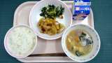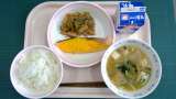 ごはん、いかとさつまいもの甘辛揚げ、磯和え、具だくさんみそ汁、牛乳 〈産地〉 ...