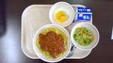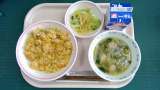 豆腐の中華丼、もやしと茎わかめのサラダ、中華スープ、牛乳 〈産地〉 ぶたにく:...