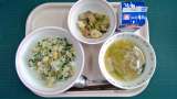 翡翠チャーハン、豚肉と生揚げのみそ炒め、ビーフンスープ、牛乳 〈産地〉 ぶたに...