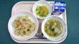 中華おこわ、パリパリサラダ、白菜と肉団子のスープ、牛乳 〈産地〉 とりにく:岩...
