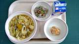 ほうとう、じゃが丸くん、れんこんのゆかり和え、牛乳 今日は、「冬至献立」という...