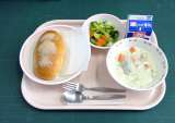 揚げパン、ホワイトシチュー、フレンチサラダ、牛乳 〈産地〉 ぶたにく:秋田県 ...