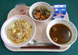チャーハン、ワンタンスープ、オレンジ、牛乳 〈産地〉 えび:タイ たまご:栃木...