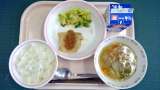 ごはん、いかのチリソース、何でもせん切りサラダ、わかめスープ、牛乳 〈産地〉 ...