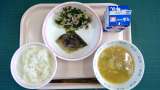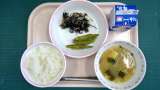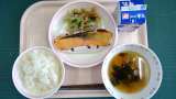 ごはん、銀鮭の西京焼き、カリカリ油揚げのおひたし、人参とわかめのすまし汁、牛乳 ...