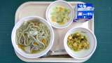 けんちんうどん、炒り豆腐、ツナマヨサラダ、牛乳 〈産地〉 とりにく:岩手県 に...