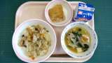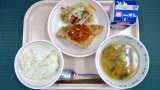 ごはん、鶏肉の揚げ餃子、海藻サラダ、中華スープ、牛乳 〈産地〉 とりにく:宮崎...