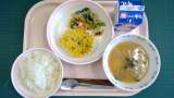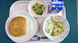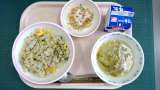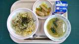 ツナチャーハン、バンバンジーサラダ、ビーフンスープ、牛乳 〈産地〉 とりにく:...