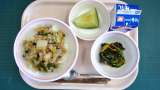 ごはん、千草焼き、梅和え、野菜のみそ汁、牛乳 〈産地〉 とりにく:宮崎県 たま...