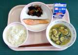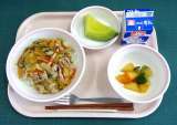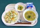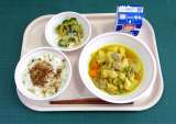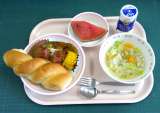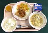 〈今日の献立〉 ミルクツイストパン、松阪ポークのバーベキューマリネオーブン焼き、...