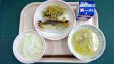 ご飯、鰆の西京焼き、カリカリ油揚げのおひたし、冬瓜汁、牛乳 〈産地〉 とりにく...