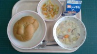 あしたばパン、秋の味覚シチュー、コールスローサラダ、牛乳〈産地〉とりにく:宮崎県...