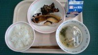 ごはん、銀だらの西京焼き、ひじきと根菜の土佐煮、野菜のすまし汁、牛乳〈産地〉ぎん...