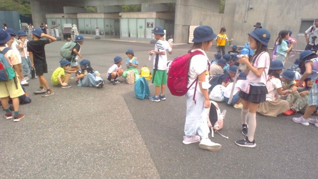 【2年生】上野動物園 公開日 2025/09/18 更新日 2025/09/18 校長日記 イソップ橋では「もうパワーが10%しか残ってない!!」とか「この坂を上り終わったら、パワーは1%しか残らない!」なんて言いながら歩いていましたが、無事に最後のトイレ水飲みポイントにやってきました。写真は、休憩中の1コマですが、この後、班長さんが人数確認をして、みんなで出発しました。バス乗り場まで、あと一息です。