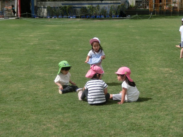 9月22日【なかよし園】広い校庭で遊んだよ 公開日 2025/09/25 更新日 2025/09/25 校長日記 小学校の振替休業日に、なかよし園の保育園舎の子たちが遊びに来ました。広い芝生の校庭で思いっきり遊びました。
