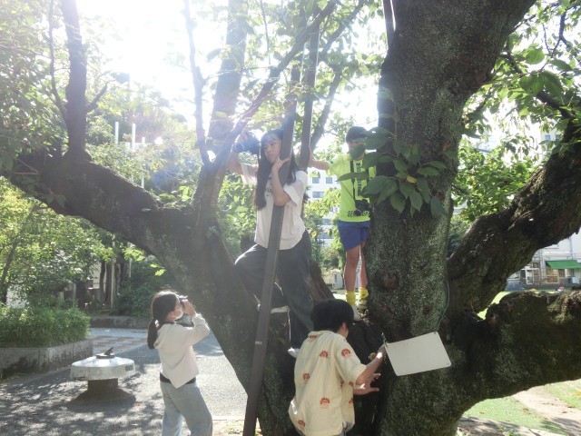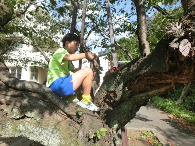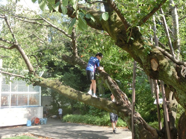 中には、桜の木に登って撮影している子もいました。