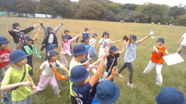 10月3日【全学年】全校遠足⑲ 代々木公園にて 公開日 2025/10/03 更新日 2025/10/03 校長日記 ここは、グループじゃんけん。みんなで話し合って、じゃんけんで出すものを決め、先生に勝ったらクリアです。なかなか難しそうです♪