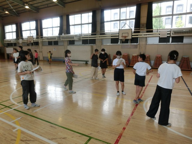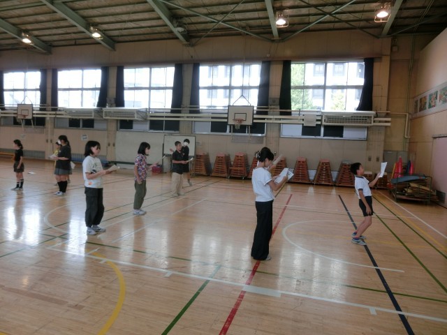 中休みの体育館に、大きな声が響きます。運動会の応援団の練習が始まりました。