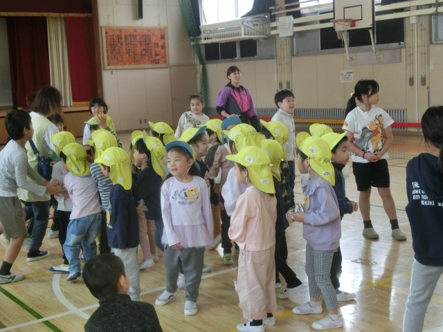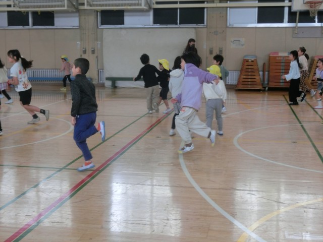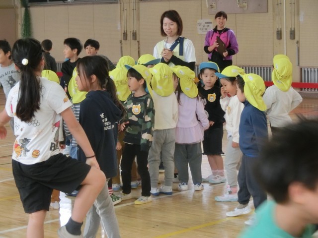 11月5日【2年生】なかよし園との交流 公開日 2025/11/05 更新日 2025/11/05 校長日記 鬼ごっこです。たんぽぽ組のお友達が逃げます。1組のお兄さん・お姉さんが鬼となって追いかけるのですが、「片足でケンケン」で追いかけるそう!!大変だと思ってみていると・・・片足ケンケンの2年生、速いんです(^^;あっという間に、捕まえてしまいました。