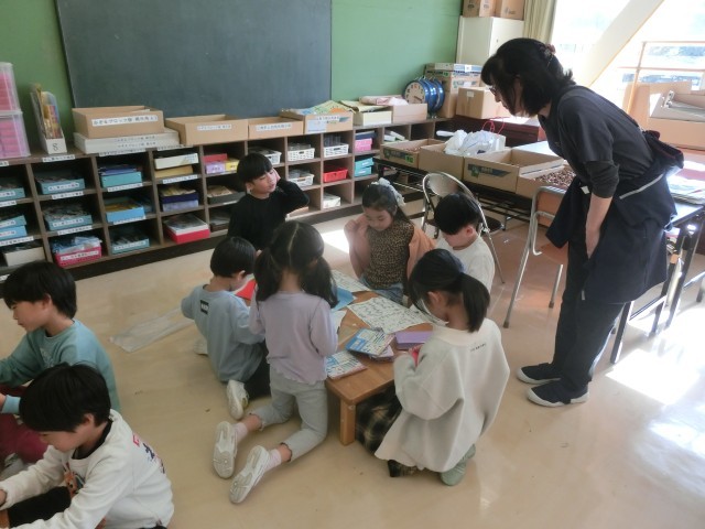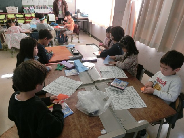 11月10日【1年生】なかよし園との交流 公開日 2025/11/10 更新日 2025/11/10 校長日記 先週に引き続き、1年生は今週もなかよし園のすみれ組(年長児)と交流します。今日は一緒に折り紙を折っていました。